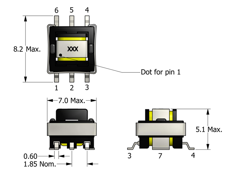 - 5.1 mm low-profile SMT current-sense transformer