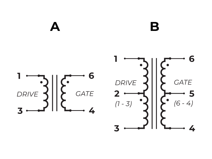 Variants with symmetrical secondary windings support push-pull gate-drive circuits, allowing strong turn-on and turn-off currents. Because turn-off strength is critical in high-speed devices, symmetric windings help ensure predictable negative gate drive and prevent unintended conduction.
